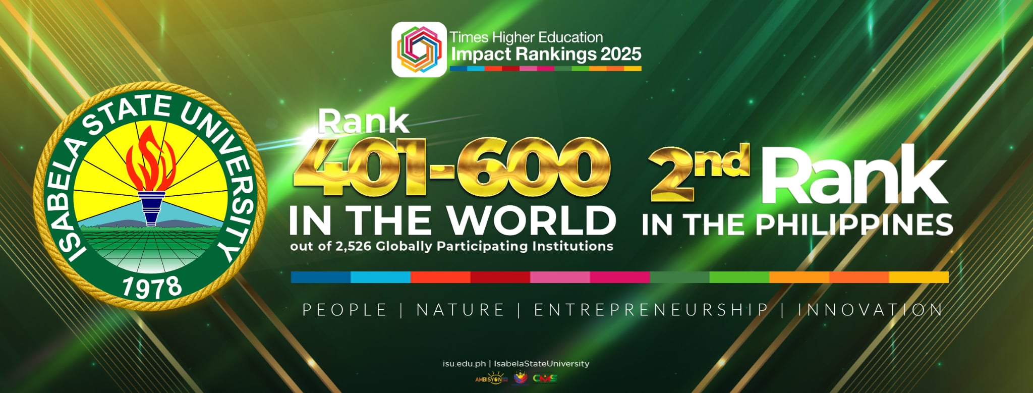 Isabela State University as a Delivering Higher Education Institution and leading state university in North-eastern Philippines views the challenges of the 21st Century, alongside the inevitable changes in the course of time, as positive determiners of development.