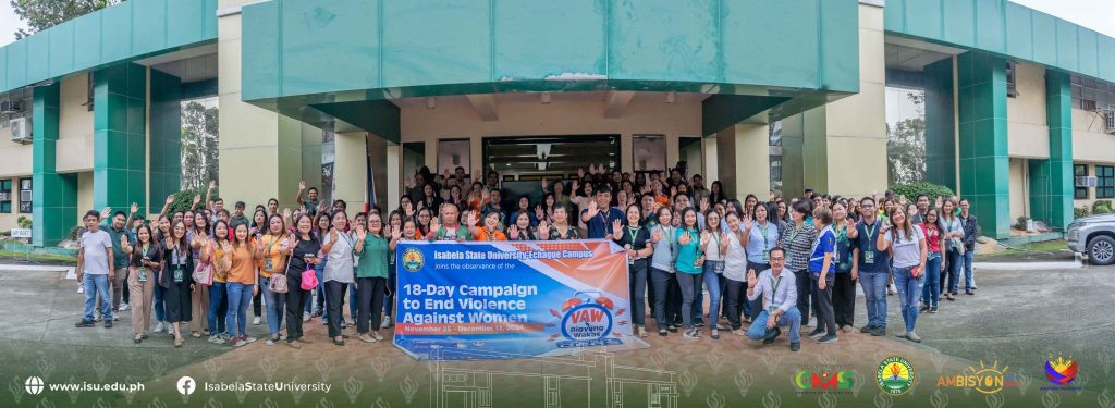Isabela State University (ISU) reaffirmed its strong commitment to providing a platform for stakeholders to frankly discuss issues and challenges. In one such instance, the university has actively participated in the 18-Day Campaign to End Violence Against Women, held from November 25 to December 12, 2024. The campaign was launched simultaneously across all ISU campuses on November 25, 2024, with the participation of university officials, faculty, staff, and students. This initiative aligns with Proclamation No. 1172, s. 2006 and Republic Act No. 10398, both of which mandate government institutions to promote awareness and help eliminate all forms of violence against women and girls.