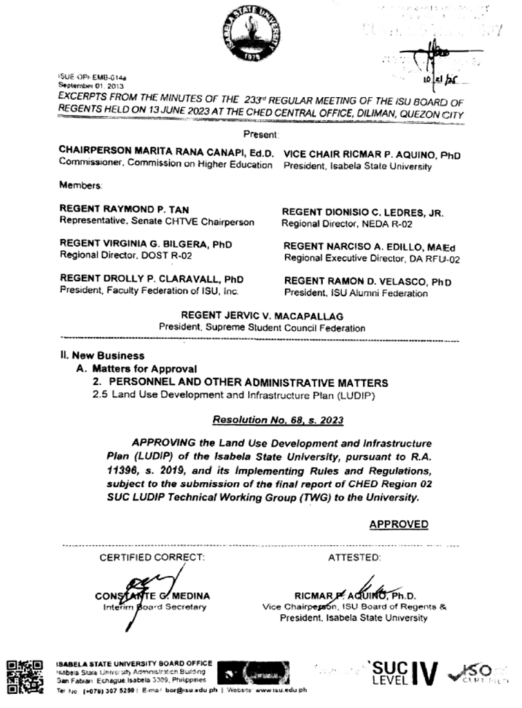 Isabela State University (ISU) has formally approved its Land Use Development and Infrastructure Plan (LUDIP), which serves as the guiding policy to ensure that all renovations and new construction projects adhere to energy efficiency and sustainability standards. This plan mandates that every building activity—whether new development or facility improvement—integrates energy-saving measures such as the use of energy-efficient lighting, natural ventilation, and sustainable building materials.